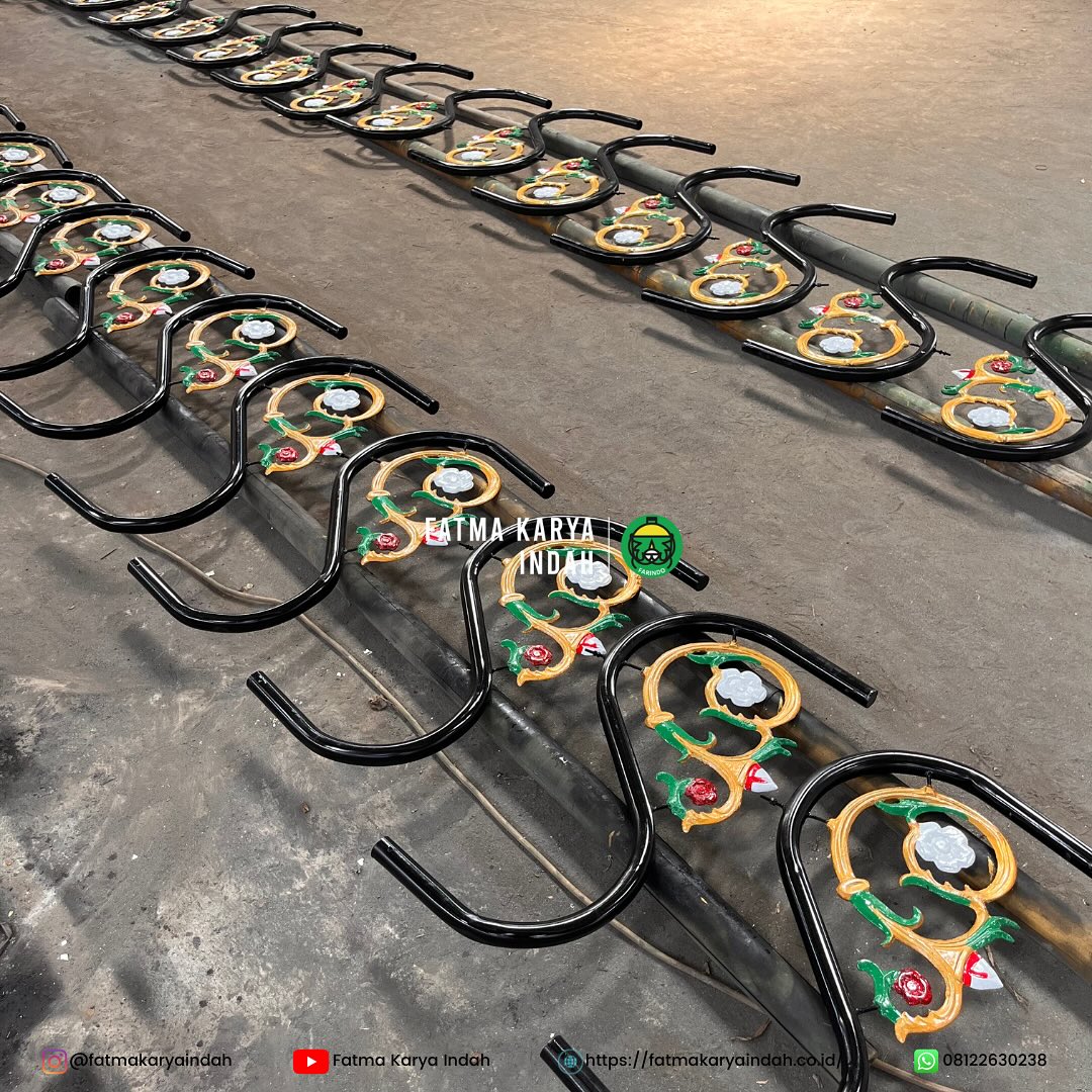 Tiang lampu khas Kota Madiun ini dirancang dengan pendekatan dekoratif yang kuat, terlihat dari ornamen floral pada bagian lengkungan tiang.